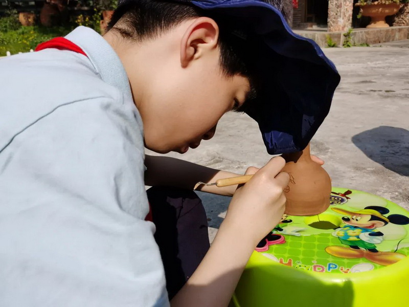 Then we came to the Youth Home Pottery Experience Center, under the demonstration of the pottery master, personally experience kneading mud, drawing billet, carving......