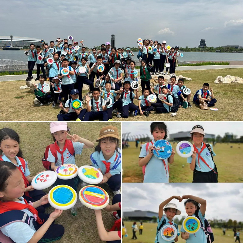 在美丽的安东湖旁,孩子们合影留恋,拿着飞盘跃跃欲试,尽情地嬉戏。