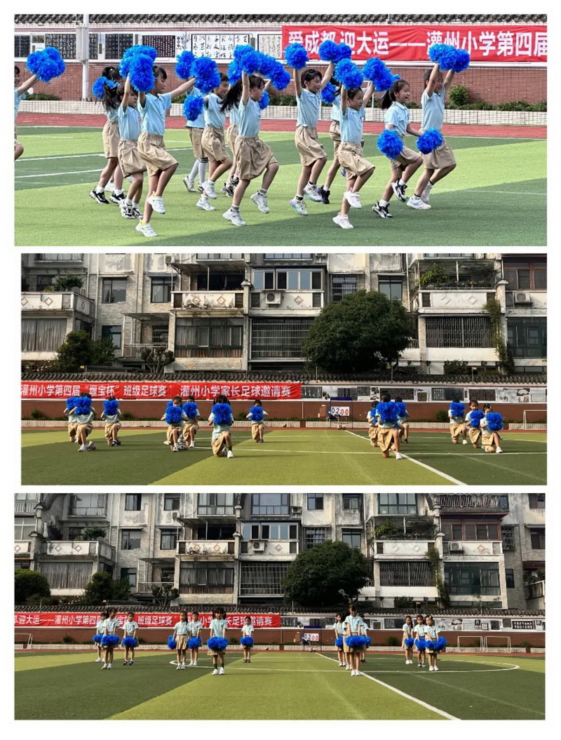 At half-time, the second-grade cheerleading team of the school carried out a cheerleading performance, showing the combination of cheerleading and beauty, adding a different color to the football match.
