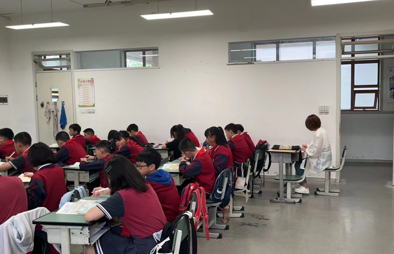 教研室教研员,我校质量监控中心团队和蒲阳小学教师深入课堂,聆听了四节随堂课,其中包含语文,数学,英语以及综合。The teachers went deep into the classroom and listened to four lessons, including Chinese, math, English and general.
