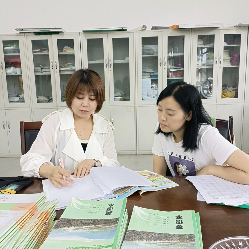 The teachers carefully looked at the teaching design and student homework, and targeted exchanges, sharing experience and methods.