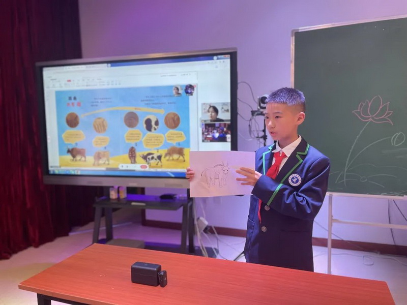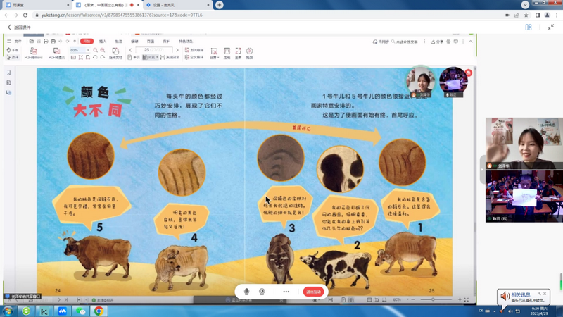 4月29日,我校参与的由中国美术学院国际交流与合作交流处支持的直播课《原来,中国画这么有趣!》的第三次国际直播课顺利举行。自4月1日起第一次开课,一个月来,已经成功举行了三次。今天我国四川省都江堰市灌州小学校、石羊小学、聚源小学的孩子们在中国美术学院刘泽华老师的带领走近中国传世名画《五牛图》与印尼棉兰南洋之晖学校、印尼华裔中华乐趣学苑的孩子们互动交流,并从中体会到不同文化交流的趣味。