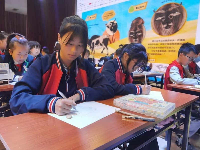 印尼的小伙伴也被《五牛图》深深吸引。Students in Indonesia are also fascinated by the Five Cows.