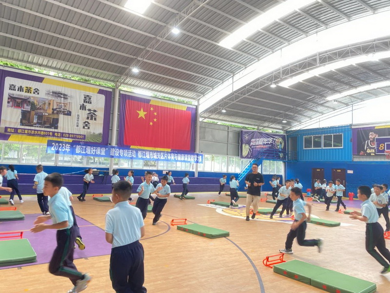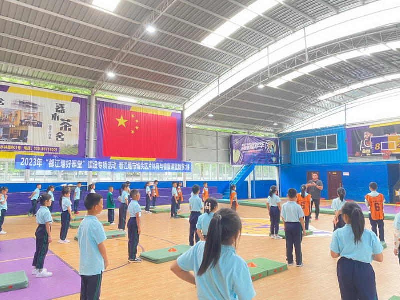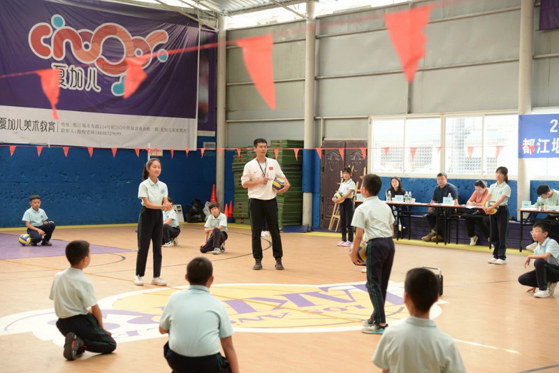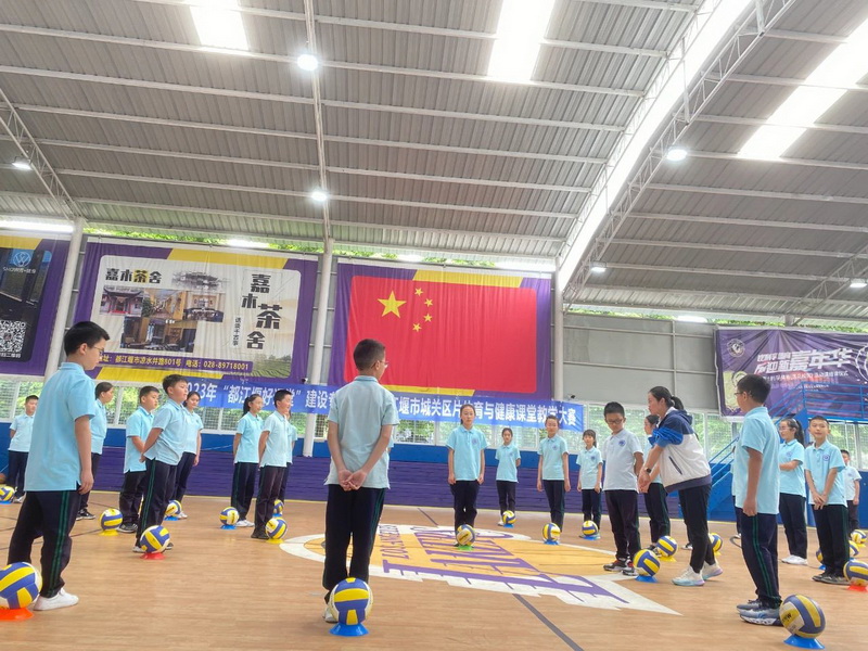 In order to further enhance the school's classroom construction ability, create a strong atmosphere of education research, promote classroom reform, and improve teaching skills and teaching quality, according to the spirit of "Good Classroom" document issued by the Municipal Education Bureau, Dujiangyan City Chengguan District Sports "Good Classroom" on-site teaching competition was successfully held in our school on May 22nd. This "Good Classroom" teaching competition totaled 12 classes for two days. Excellent teachers from the brother schools in Chengguan District of Dujiangyan City participated in the competition. The teachers selected different classes from Level 1 to Level 3 and taught the courses. The courses covered track and field, volleyball, basketball, gymnastics and traditional ethnic and folk sports.
