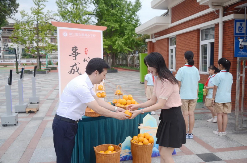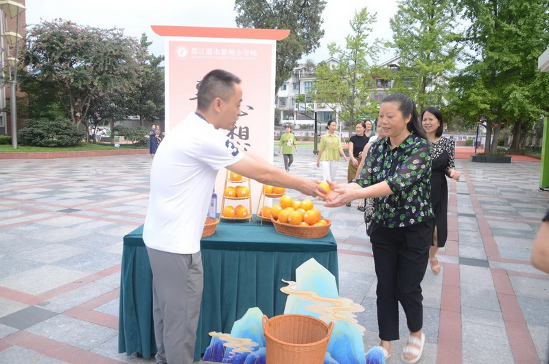 马校长手中金灿灿的橙子,祝老师们“心想事成”