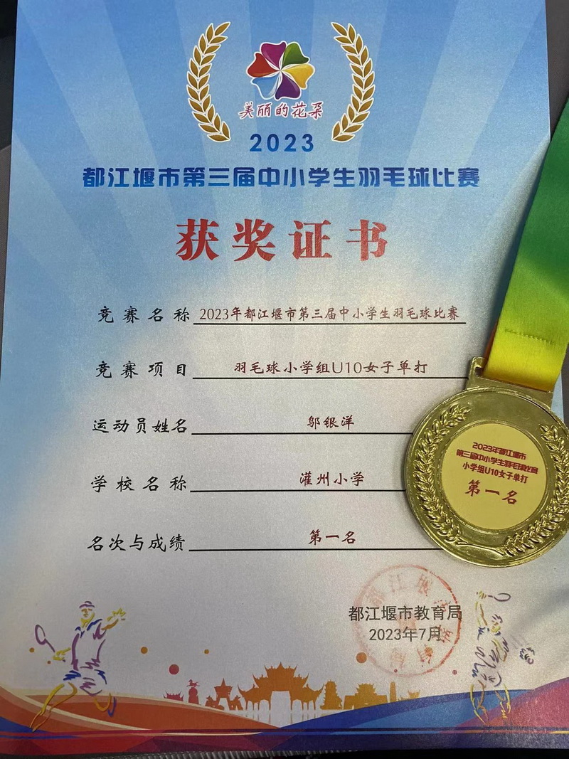 The summer badminton match for primary and secondary school students in Dujiangyan ended in the gymnasium.