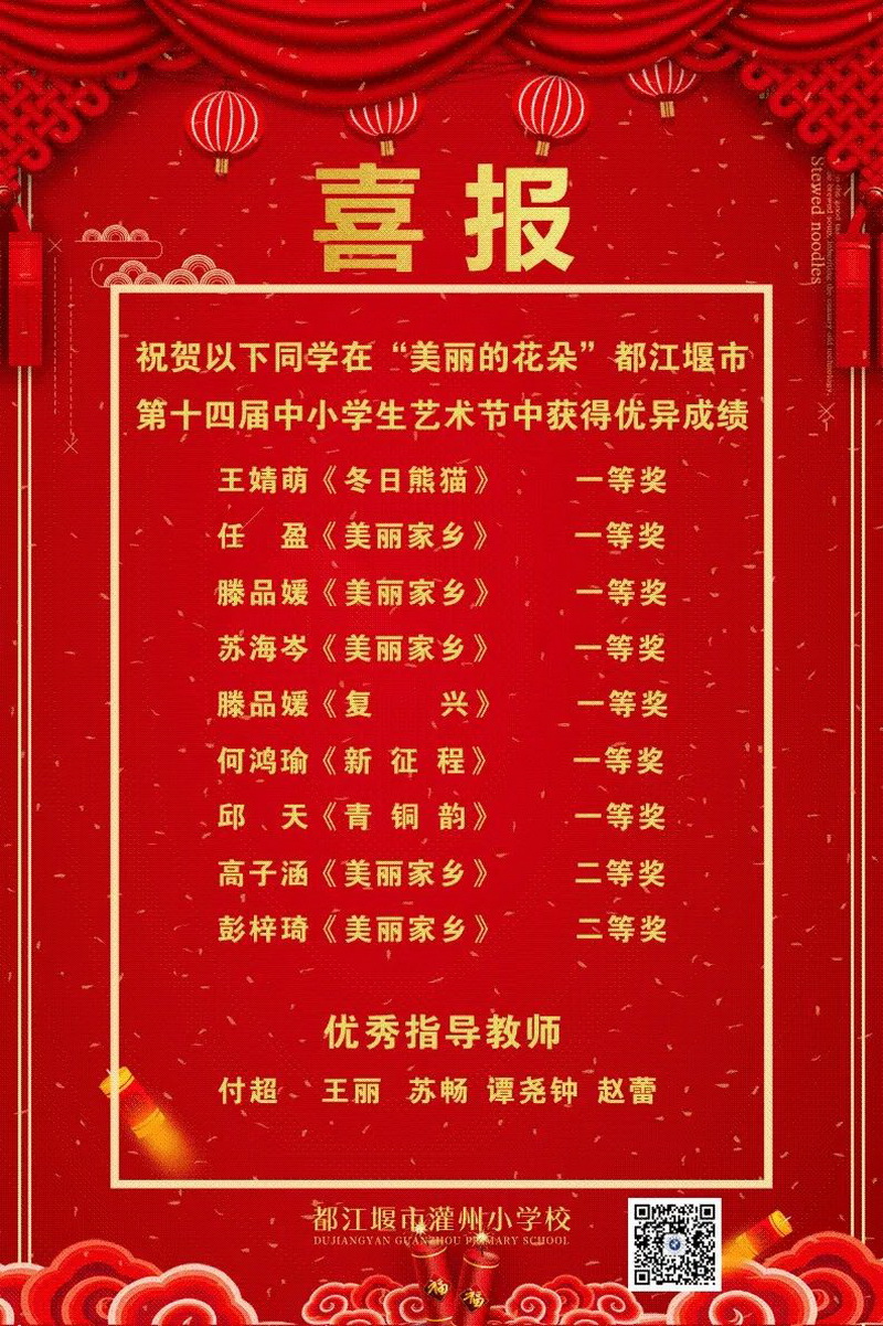 灌州·喜报|灌小学生在都江堰市第十四届中小学生艺术节中获佳绩The Art Festival was successful |