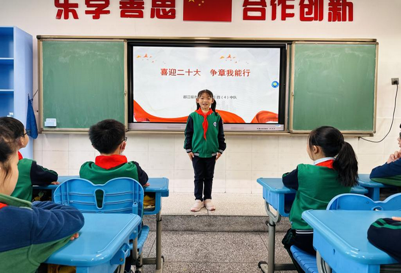 四(4)中队建队以来,中队辅导员充分发挥中队组织对队员的教育作用,认真学习少先队知识,了解少先队责任并在实际生活中让少先队队员职责落地。坚持每周通过多角度、多层次、多方面开展“少先队队课”。争章活动已连续开展近三年,围绕争章行动的要求,以成长为目标,以素养为根本,以活动为载体,以中队为舞台积极开展活动。在活动形式上,注重突出“活动育人”,逐步形成人人可行、天天可为、阶梯进步的成长激励体系,增强了队员们的集体意识和光荣感。