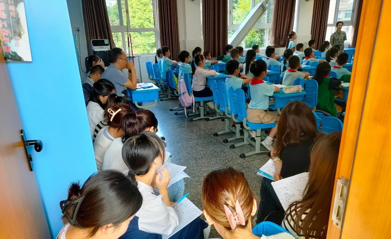 Expert He Lunzhong listened to Mr. Wu Jianqiang's "Cao Chong Weighs the Elephant" and Ms. Ye Xuanjun's "Digital Code". After the class, Mr. He commented on the two classes, gave valuable suggestions to the two teachers, and used these two lessons as examples with our mathematics and Chinese teachers to explain to the teachers how to lead students to learn more deeply under the new curriculum standards.