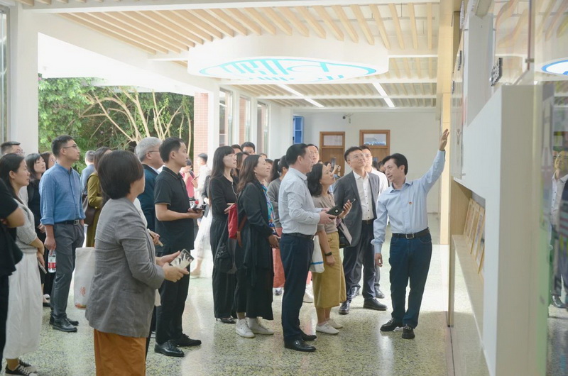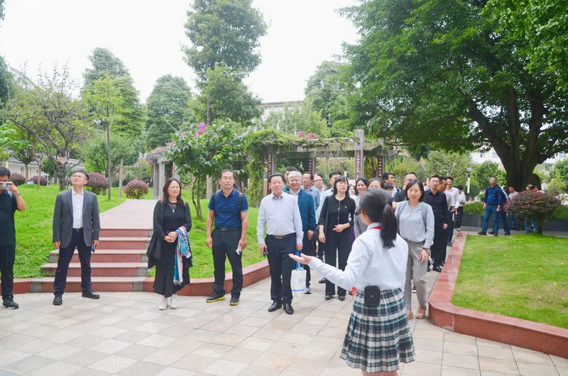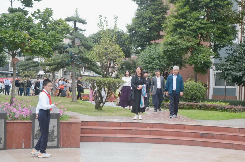 专家们在学校红领巾志愿者的引领下参观校园。
