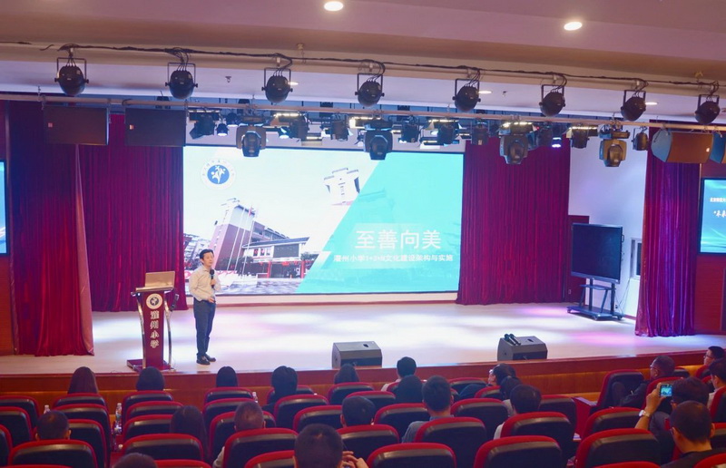 马校长向各位专家作《至善向美——灌州小学“1+3+N”结构性改革实践》专题报告。