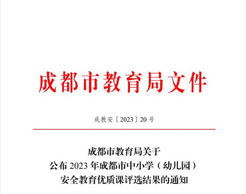 In order to further implement the spirit of the "Notice of Chengdu Education Bureau on the Selection of Quality safety education courses for primary and secondary schools in 2023", classroom teaching should be played as the main position and main channel of safety education. Among the 534 municipal entries selected by various schools in Chengdu, Teacher A Bei of our school participated in the safety teaching case on behalf of the school and won the first prize.