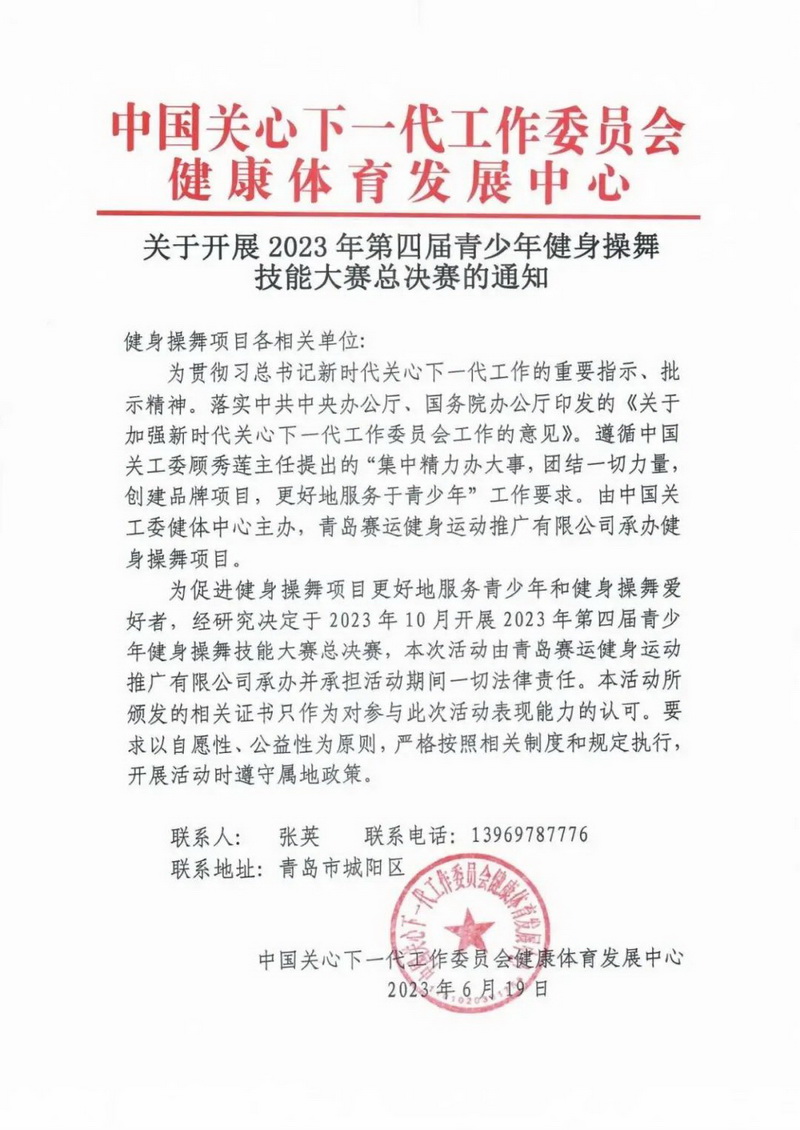 10月19日由中国关工委健体中心、青岛区健美操啦啦操协会举办的2023第四届全国青少年健身操舞技能大赛总决赛在青岛市城阳区体育中心开幕。 比赛共吸引了来自全国18省市的大中小学校、俱乐部的100余个单位、400支代表队伍、2800余名运动员共同参与,舞动青春与活力。