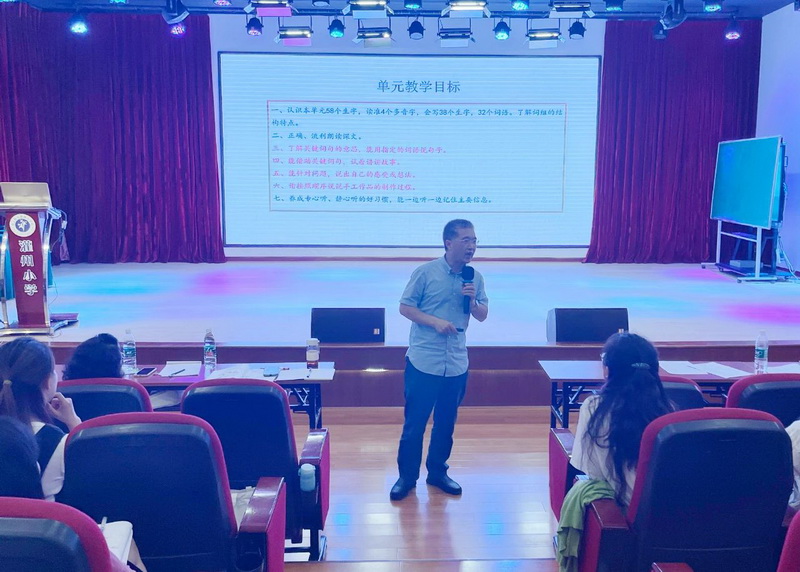 英语组邀请了成都市小学英语教研员樊波对老师们的解读进行了简要点评,并提出了一针见血的建议。樊波老师强调了单元教学目标的整体表达,单元课时的递进性以及教学评一体化的重要性,让学生的学习真正发生。