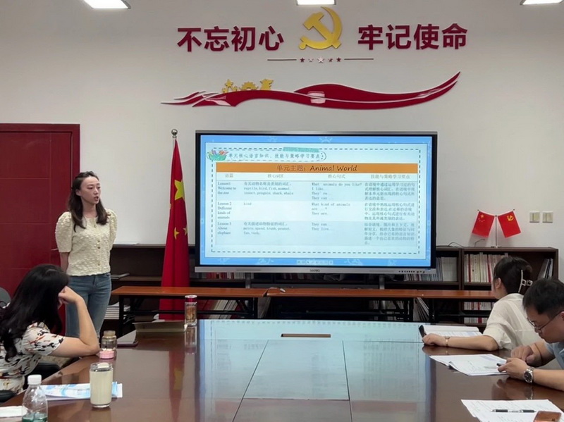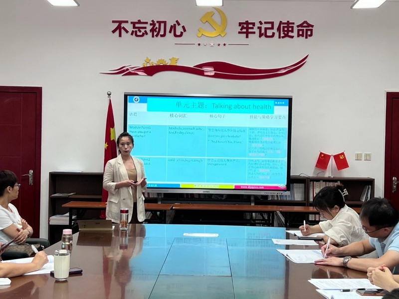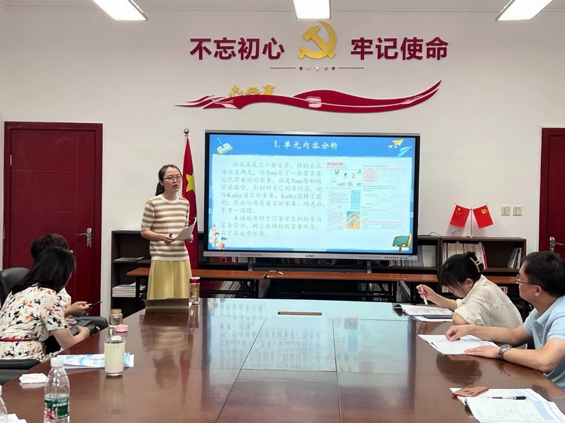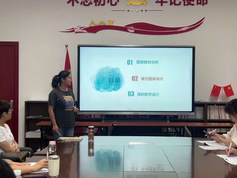The English group invited Fan Bo, a teaching researcher, to make a brief comment on the teachers' interpretation. Teacher Fan Bo stressed the importance of the whole expression of unit teaching objectives, the progressiveness of unit class hours and the integration of teaching evaluation.