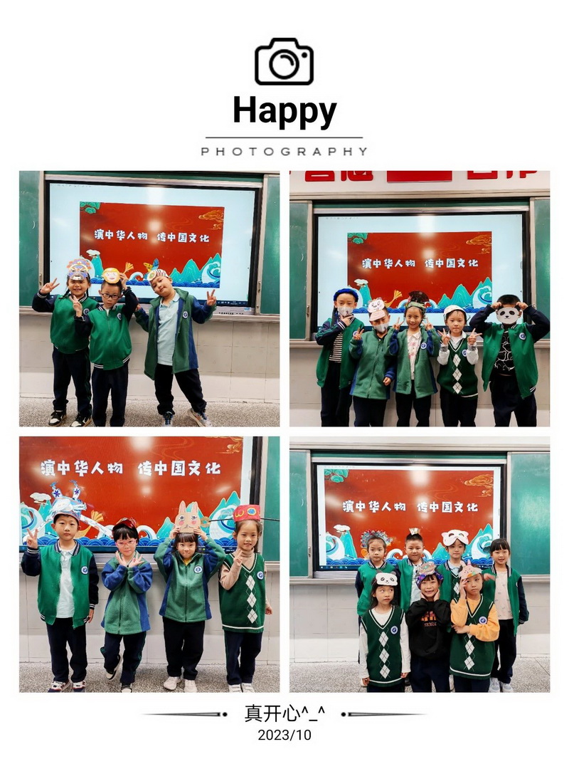 一年级实践活动——演中华人物 传中国文化 Grade 1 — Act Chinese characters and Promote Chinese culture 为了培养学生的英语学习兴趣,激发学生英语学习的自信心,一年级的孩子们在课本学习的基础上,制作了具有中国传统文化元素的头饰,并用英语在班级进行表演和展示。 On the basis of textbook learning, the first-grade children made headwear with traditional Chinese cultural elements, and performed it in English in the class.