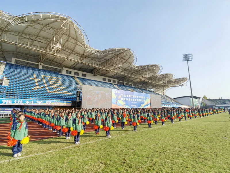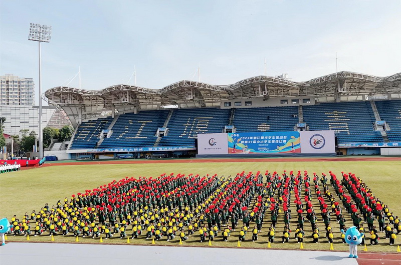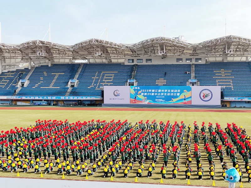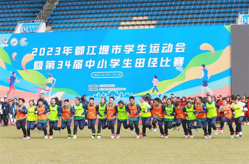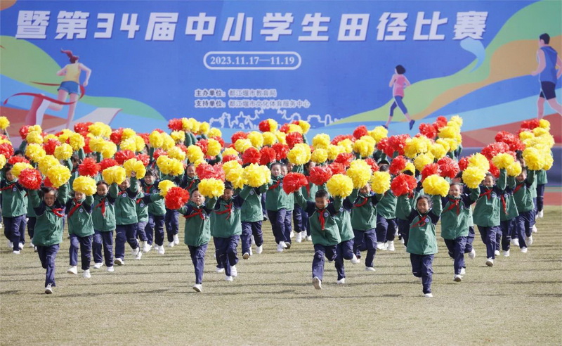 岁月峥嵘,大地鎏金。秋暮冬初,暖阳正好。2023年11月17日,都江堰市迎来了第34届中小学生田径运动会。此届市运会开幕式上,我校800学子参加了大型啦啦操表演《阳光成长》,演出中孩子们精彩的表演展现了灌小人的风采,健康娃的气质,赢得在场所有观众的尊重和认可。