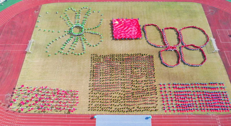 800 Young Pioneers, holding flower balls, rushed towards the green field, showcasing the positive energy of a wise and virtuous youth with their passion for sports. Their smiling faces bloom like flowers, carrying infinite hope; Like bursts of light shining, illuminating beautiful dreams.