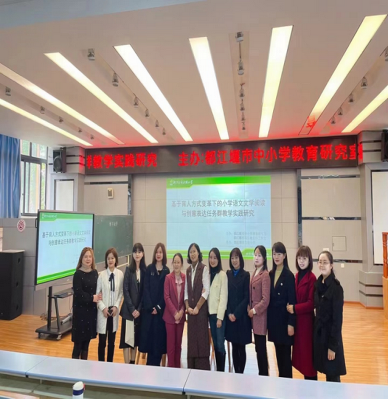 The 10th Chengdu Language Group Reading and Out-of-Class Reading Quality Class Exhibition and Evaluation in 2023 was held at Chengdu Shengfei Primary School. Our teachers Wang Jun, Cao Shan and Huang Yu participated in the whole process. Among them, Wang Jun made a reading report on "Tasting the beauty of reading and enjoying the beauty of growth" at the meeting, showing the strategies and achievements our school has made to improve students' reading literacy.