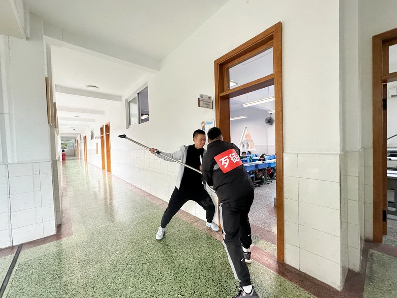 In order to protect the life safety of teachers and students, cope with the campus terrorist attacks that hurt the life safety of teachers and students on campus, improve the ability to deal with violent terrorist incidents, and strive to achieve the overall goal of "safe campus". On December 19, the school carried out a campus anti-terrorism anti-riot emergency drill with the participation of all teachers and students.
