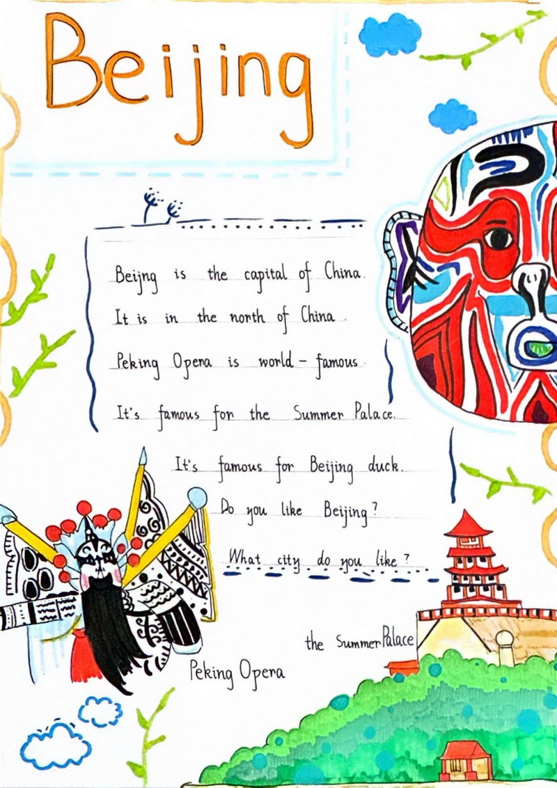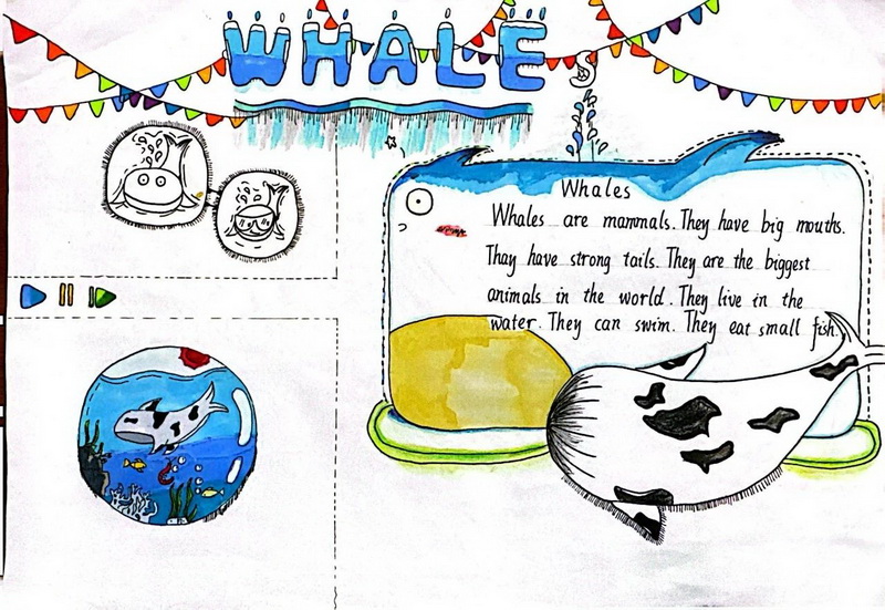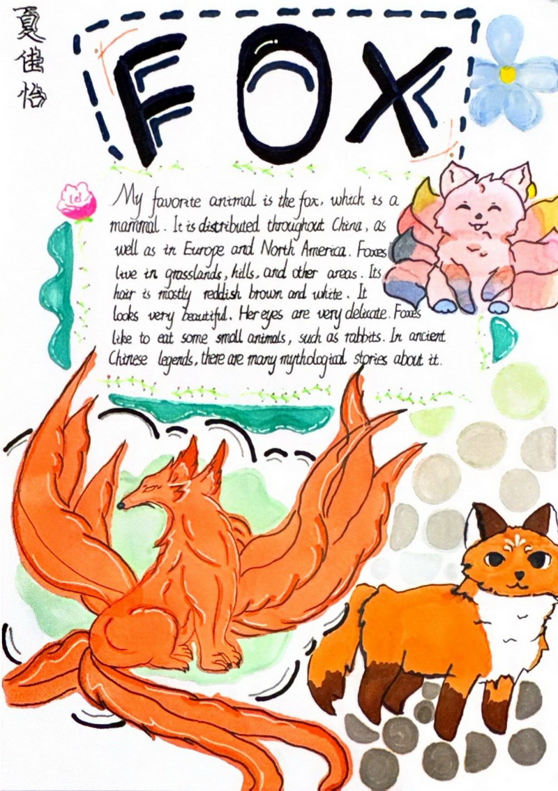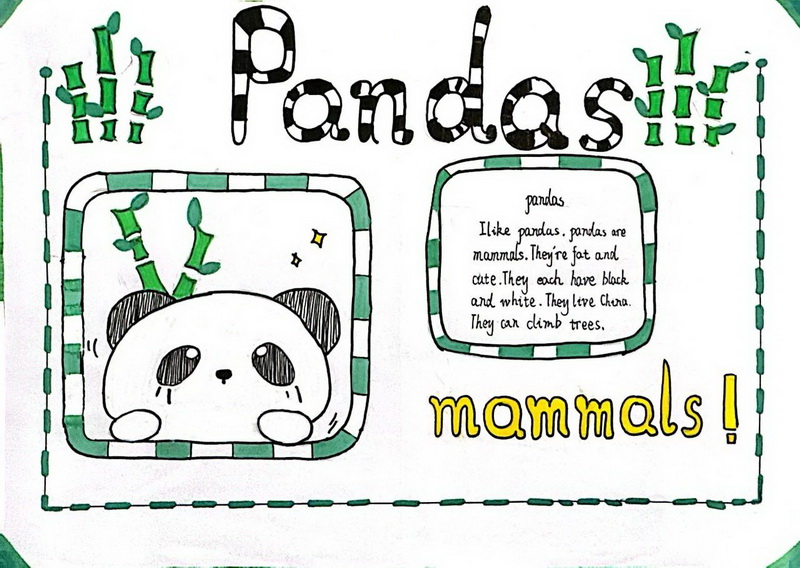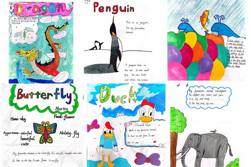 Our English Senior Group has carried out a series of special English themed activities. 这次英语活动展示的主题涉及新课标中人与社会、人与自然、人与自我三大主题,为学生们的英语创作和个性化展示搭建了舞台,激发学生的英语学习兴趣,充分展现主题式的学科育人。 This English activity stimulates students' interest in English learning and fully demonstrates the thematic discipline education 五年级学生以My Favourite Animal为主题,通过自己创作的方式,介绍自己最喜欢的动物。不仅达到学以致用的目的,同时也丰富了学生的学习活动,体验到英语学习的乐趣,培养孩子们的创新能力和实践能力。