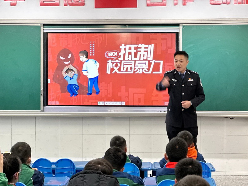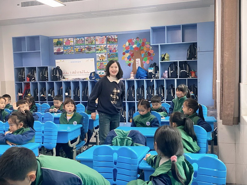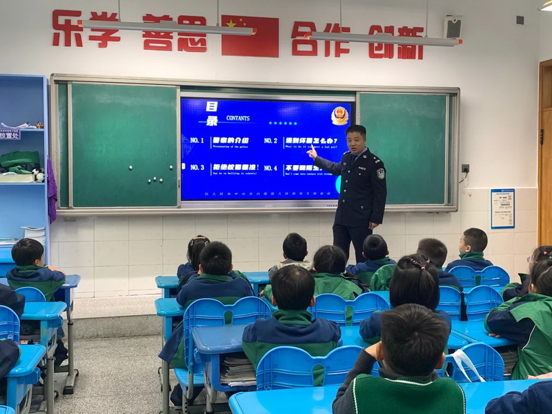 Class 1.6 Zhou Qiaoyi's father brought the "police into the classroom" to tell the children about the Chinese people's police, and popularized what to do when encountering bad people from a professional perspective; With a child's perspective and language, the children skillfully understand "what is school bullying".