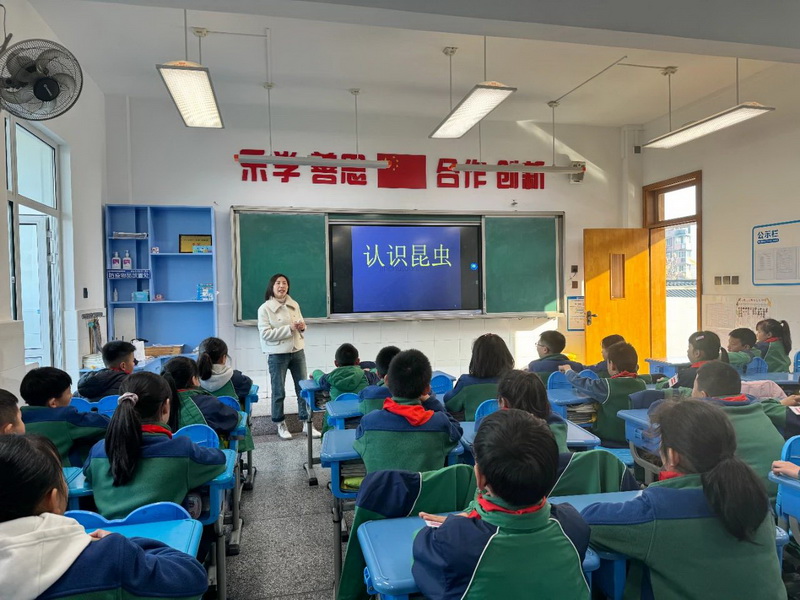 Class 4.2 Song Junxi's mother brought "Understanding Insects", learned about various insects and their living habits, explored the secrets of insects, and the children felt the beauty of nature, and also understood to respect and care for life.