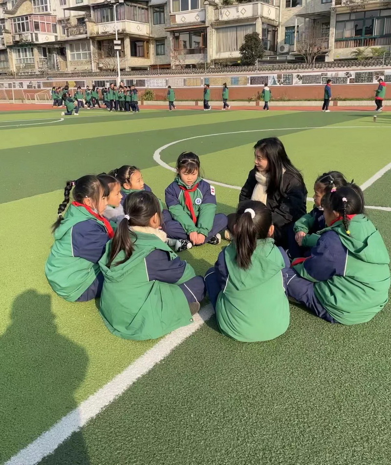 On the campus of Guanzhou Primary School in winter, the sun shines in every corner, and you can see the warm scenes of teachers and children in groups everywhere: or talking with children to channel children's small emotions; or care about the children's lives and let them feel the love of "new friends"; Or play together and enjoy the happiness of growing up