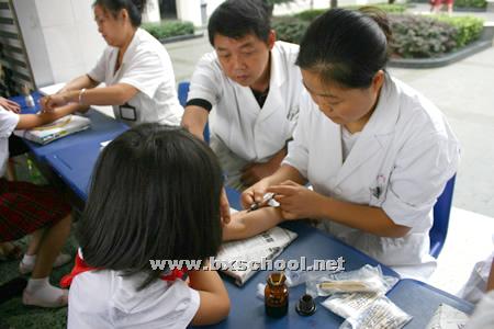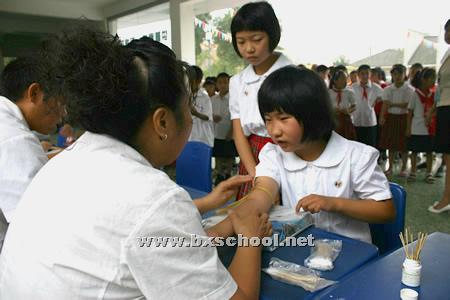 今日,市疾控中心的医生在我校医务人员的协同配合下,为学生抽血化验乙肝抗体情况,以预防乙肝病毒交叉感染,及时掌握学生健康情况。