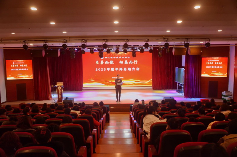 On January 26, 2024, the annual summary meeting of 2023 of Guanzhou Primary School was held in the academic hall.