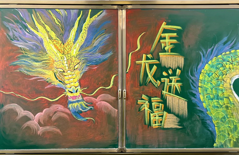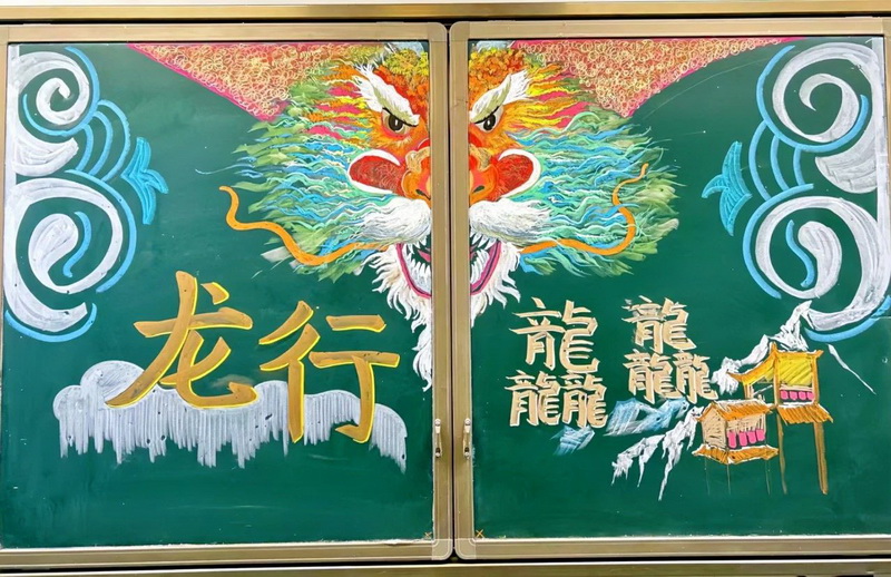 黑板上的“龙年系列主题板报”温暖美好,寄托了新学期老师对你们的殷切希望和美好祝福。