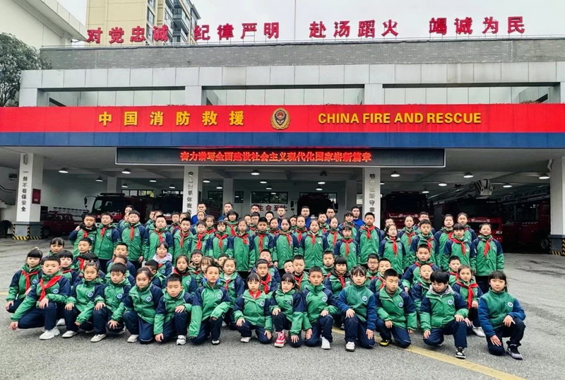 In the eyes of children, a fire truck whistling past with its siren is a mysterious and interesting vehicle, just like engineering vehicles, airplanes, and rockets. Firefighters who wear uniforms and can use water guns to put out fires are particularly brave and powerful! On the afternoon of February 29, our students went into the Dujiangyan Irrigation Project Fire Rescue Brigade to carry out fire practice activities and had a "zero distance" contact with firefighters.