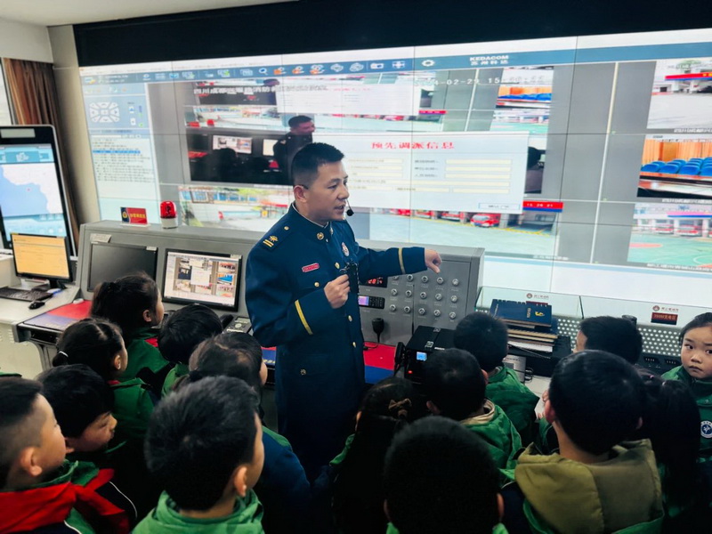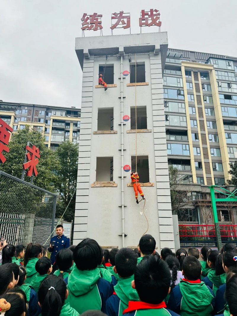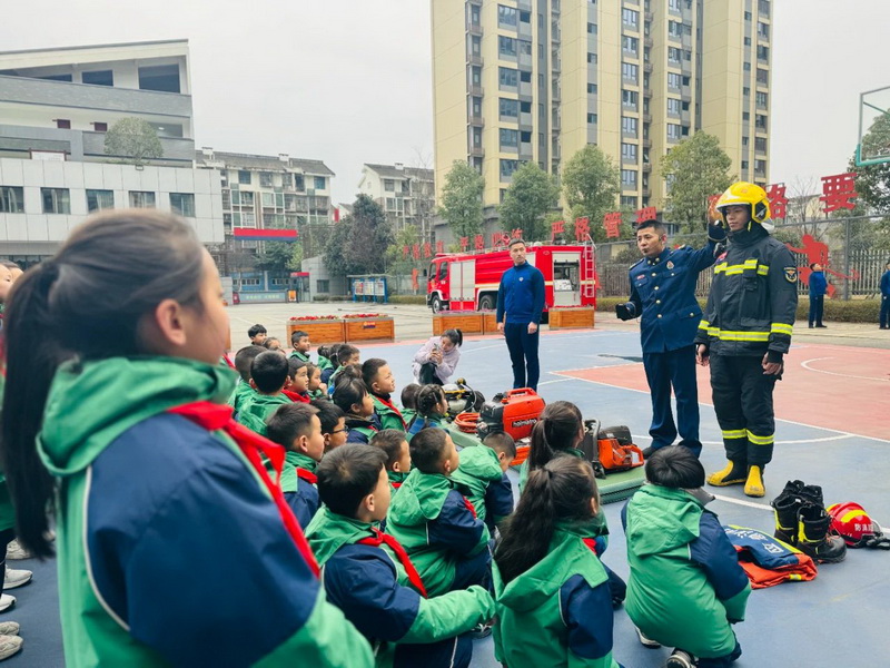 都江堰市消防救援大队的消防员叔叔给孩子们带来了一节校园消防安全“开学第一课”,指导孩子们进一步强化消防安全意识,积极学习掌握基本的消防知识技能。