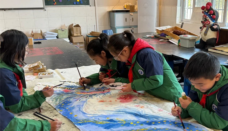 Pay attention to detail during painting. Dragon color and water concentration control children choose their favorite color, using the same color contrast painting, pay attention to the relationship between light and dark color, light color on the bottom of dark decorative details. The background of different dragon paintings is also different, and different styles such as painting flowers and auspicious clouds make the four dragon pictures more rich.