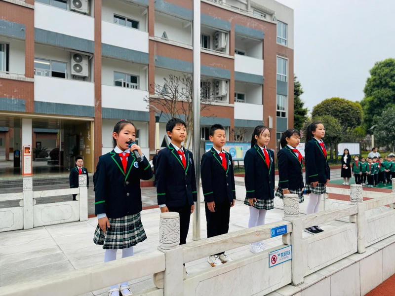 On Monday, during the flag raising ceremony, all teachers and students stood under the solemn national flag, with an immense sense of respect, to commemorate the martyrs who bravely sacrificed themselves for the country and the people.
