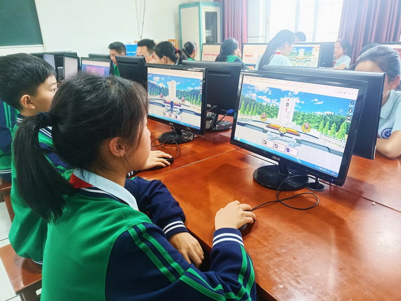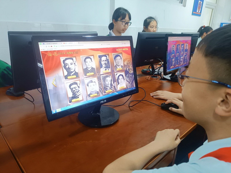 During the sweeping activity, the students solemnly clicked on the flower basket page on the website, offering virtual flower baskets to the martyrs and leaving sincere messages.