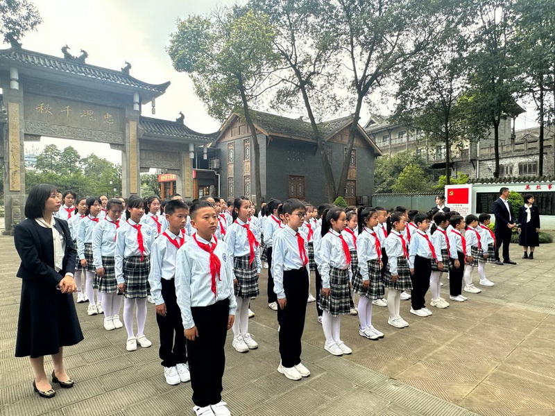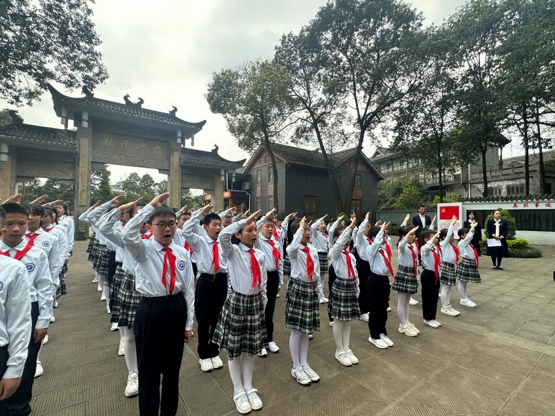 Subsequently, the red scarves of the new era raised their right fists to revisit the oath of joining the team, once again expressing the team members' determination to inherit the martyrs.