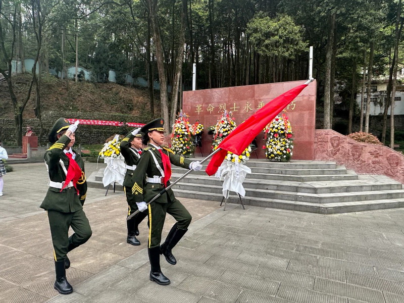 Party member representatives and two ceremonial team members walked slowly towards the martyr's tombstone, offering flower baskets to express their high respect and deep condolences to the martyrs.
