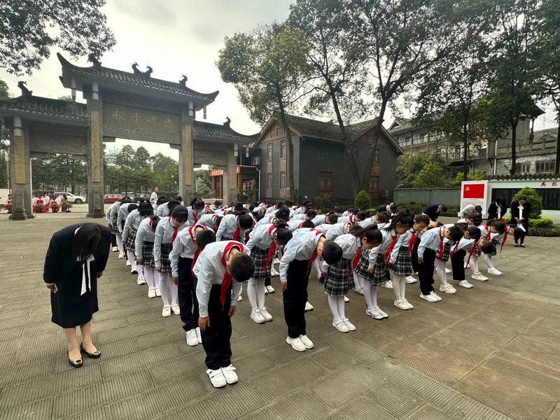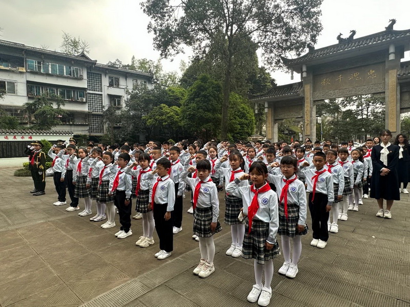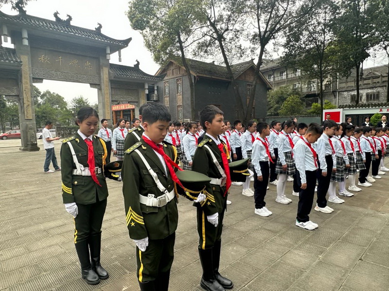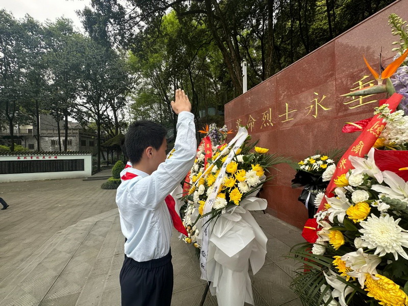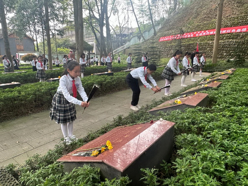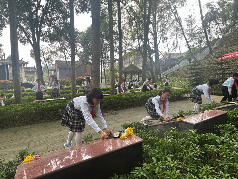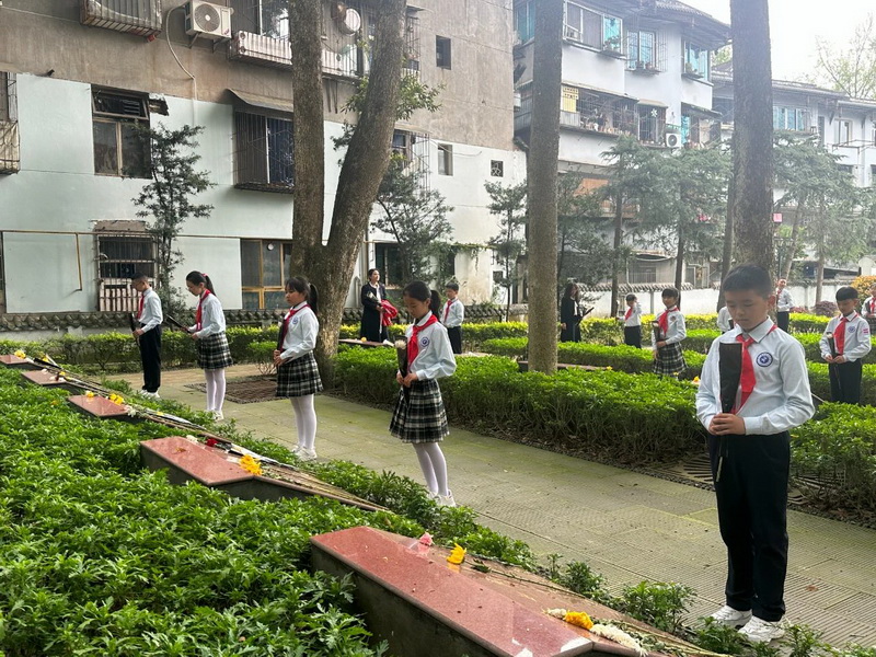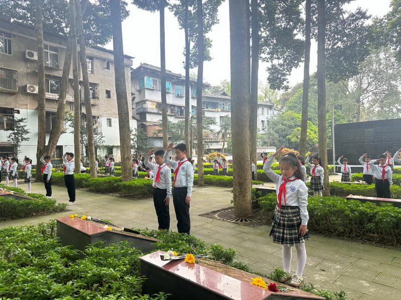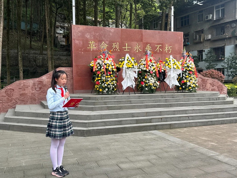 On April 1, representatives of Party members, teachers and young pioneers of our school went to Dujiangyan Martyrs Cemetery to carry out the theme activity of sacrifice to heroes during the Qingming Festival.