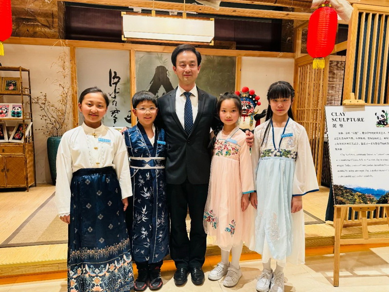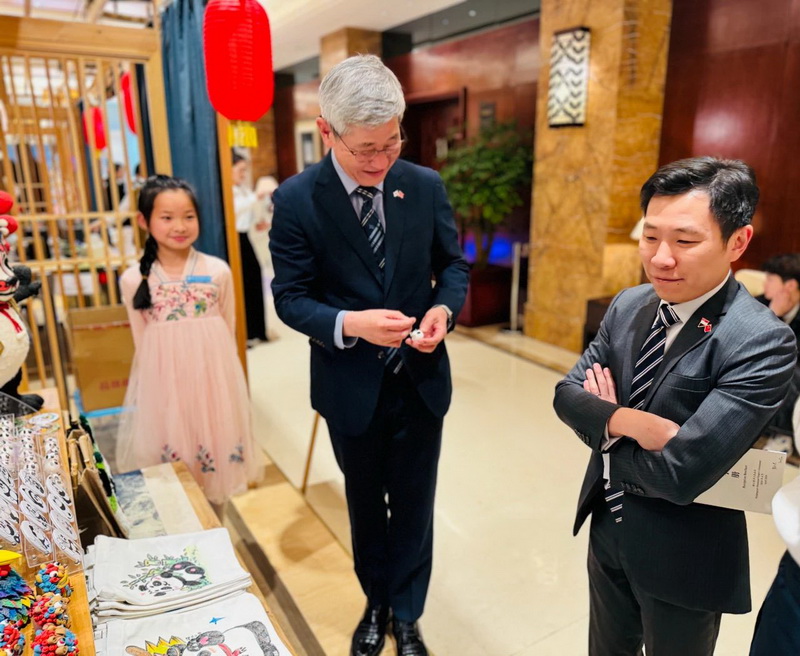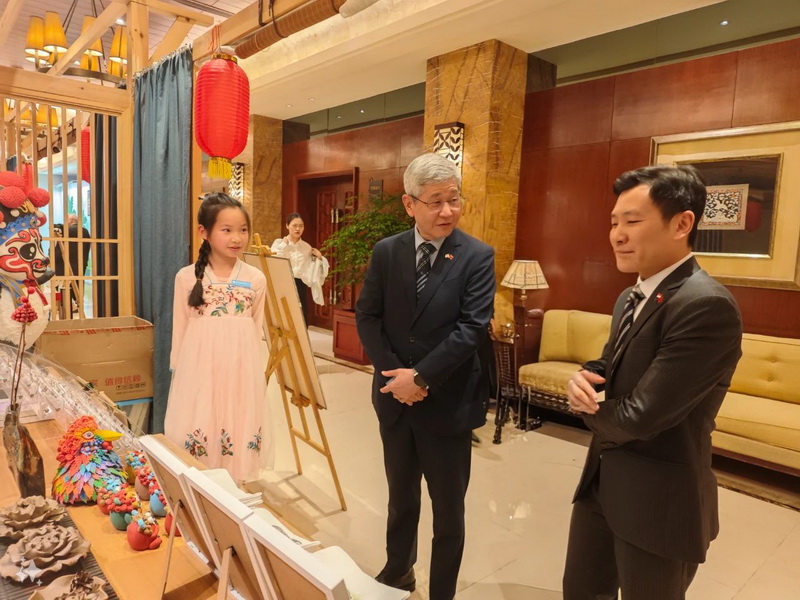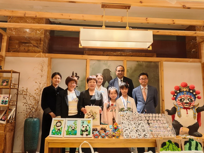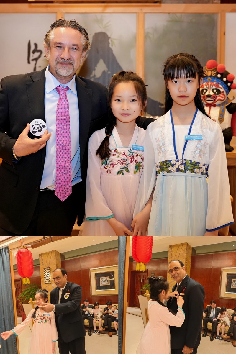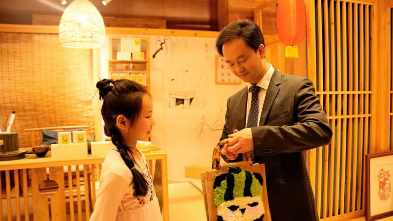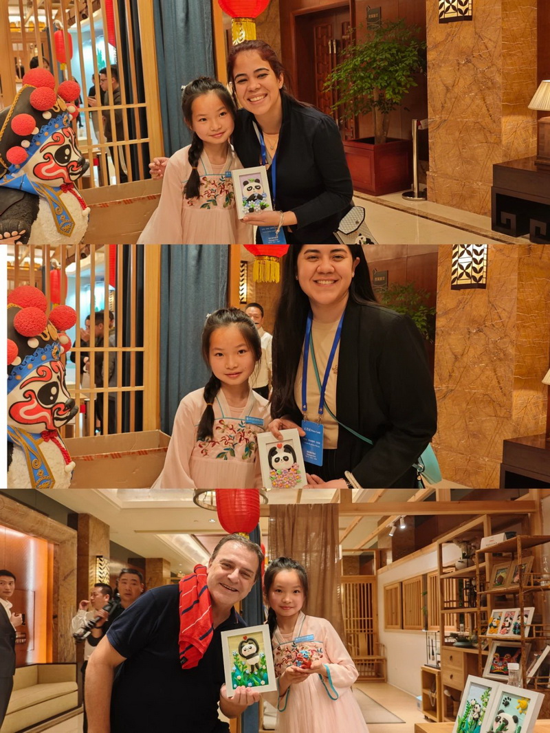 Joel Tan,Consul General of Singapore in Chengdu, and Mr. Yan Yuanzai, Consul General of South Korea in Chengdu, visited and learned about our school's unique project - clay sculpture. Mr. Yan Yuanzai picked up the panda pendant made by the children and praised it endlessly.