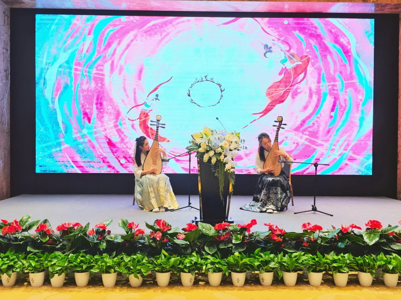 城市推介活动后,出席本次活动的领导和嘉宾观看了我校师生的琵琶演奏节目。