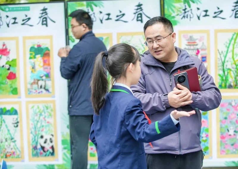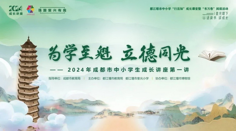 4月8日上午,成都市中小学生成长讲座第一讲暨都江堰市中小学生“行且知”成长课堂“书万卷”阅读活动在都江堰市奎光塔公园正式开讲。我校的美术作品在活动中得到了精彩展示,受到了与会领导和嘉宾的一致好评。