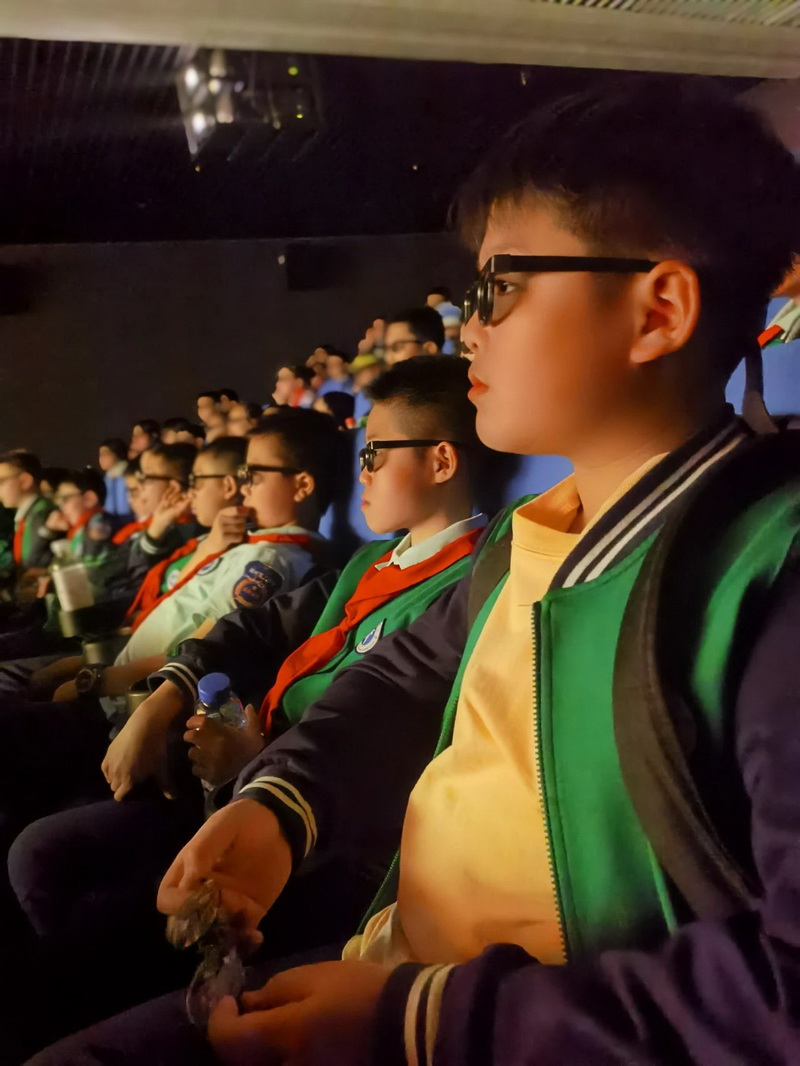 接着,孩子们一起观看了空中实战的3D电影,身临其境地感受了航天的感觉以及空战的激烈。