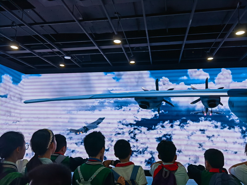 午餐后,同学们在航天科普讲解员的带领下,开启了一次航空知识探索之旅游。学习航天发展历程、飞机飞行原理、航天飞机的各种用途以及各种型号的战斗机等多个主题模块。同学们认真聆听,收获了满满的航空知识。