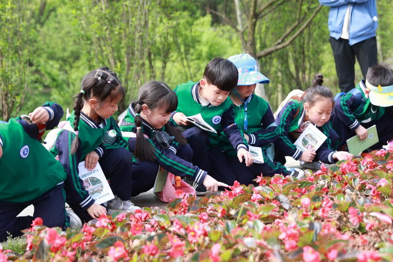 春天的植物园百花齐放,红的、黄的、白的……交织成花的海洋,与孩子们灿烂的笑脸竞相辉映,如梦如幻。孩子们穿梭在花的世界,了解花的形态,聆听花的声音、探索花的奥秘,真正把课堂搬进了自然……