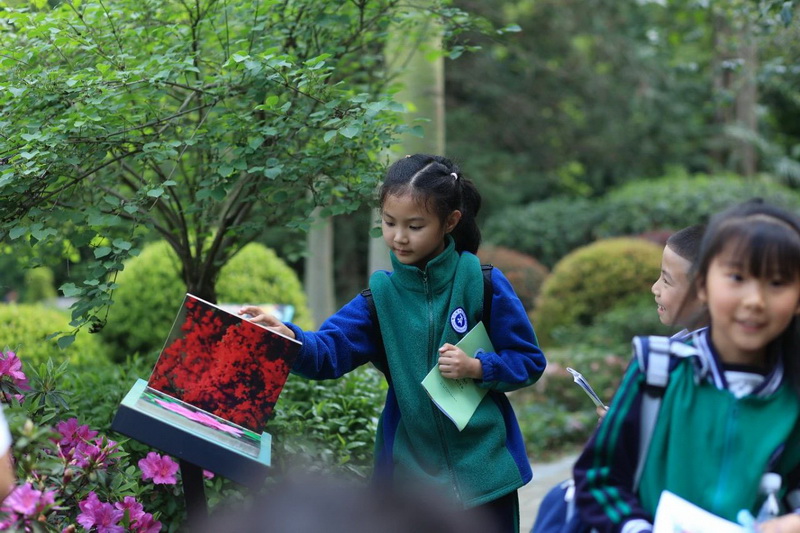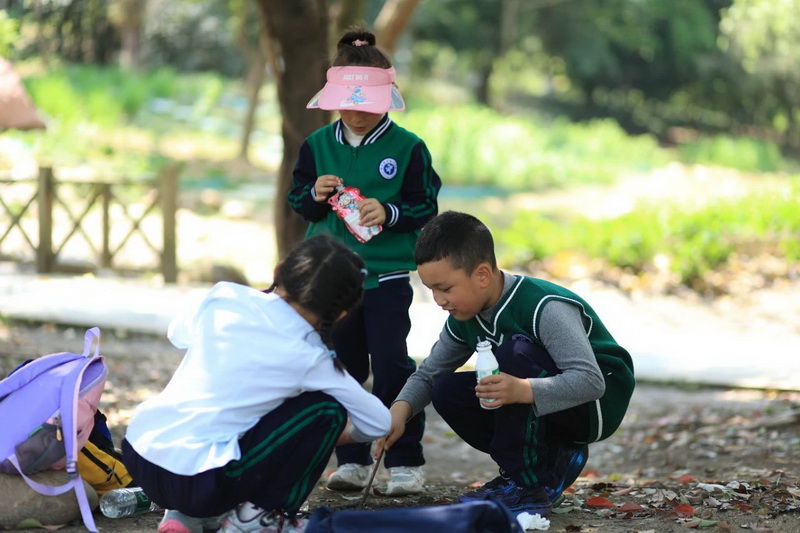 活动中,孩子们借助研学手册的指引,在老师的带领下,一路观察,一路思考,不仅感受到了大自然的生机勃勃与鬼斧神工,更是学到了许多课本之外的植物的知识。