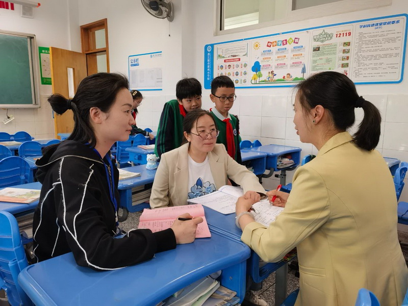 课间,跟岗教师和我校教师就教材解读、备课、课堂教学、作业设计等方面进行交流研讨,促进了教师之间的互相成长。
