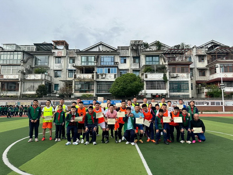 为全面推进五育并举,提升学生综合素养,切实落实“每天锻炼一小时,健康生活一辈子”生活理念,增强学生体质,融洽亲子关系,促进家校共育,我校一年一届的“爸爸运动队”足球赛拉开序幕。 In order to comprehensively promote the five education simultaneously, improve students' comprehensive literacy, effectively implement the life concept of "exercise one hour a day, healthy life for a lifetime", enhance students' physique, harmonize parent-child relationship, and promote home-school co-education, our school's annual "Dad Sports team" football match kicked off. 瞧,六年级“爸爸运动队”的精彩瞬间。