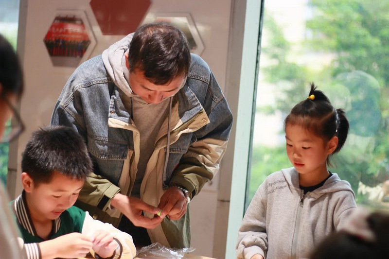 Dujiangyan Irrigation Project's Development and Planning Section Luo Shiyong, Dujiangyan Art Teaching and Research Officer Ma Yuwei, and the vice principal of Guanzhou Primary School Ye Tiping were also present at the scene, experiencing the charm of dough sculpture art with the children.