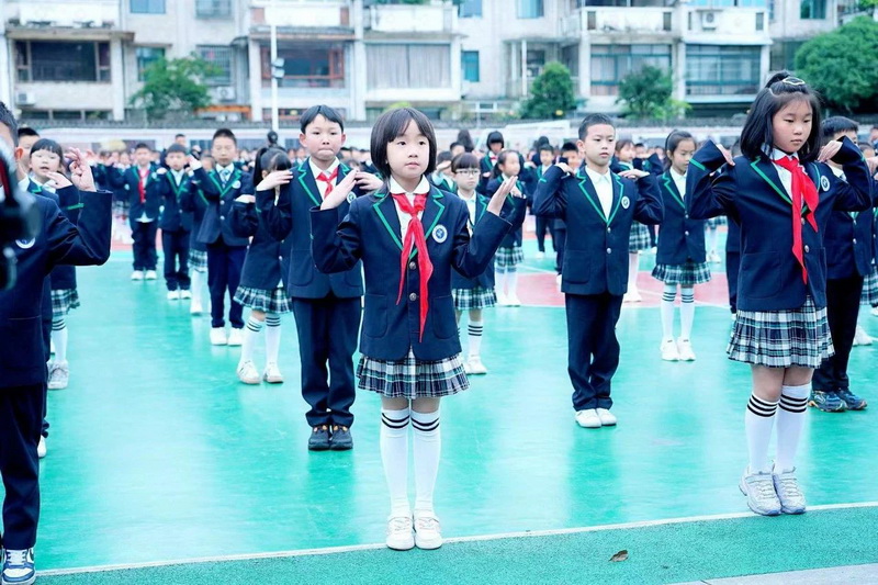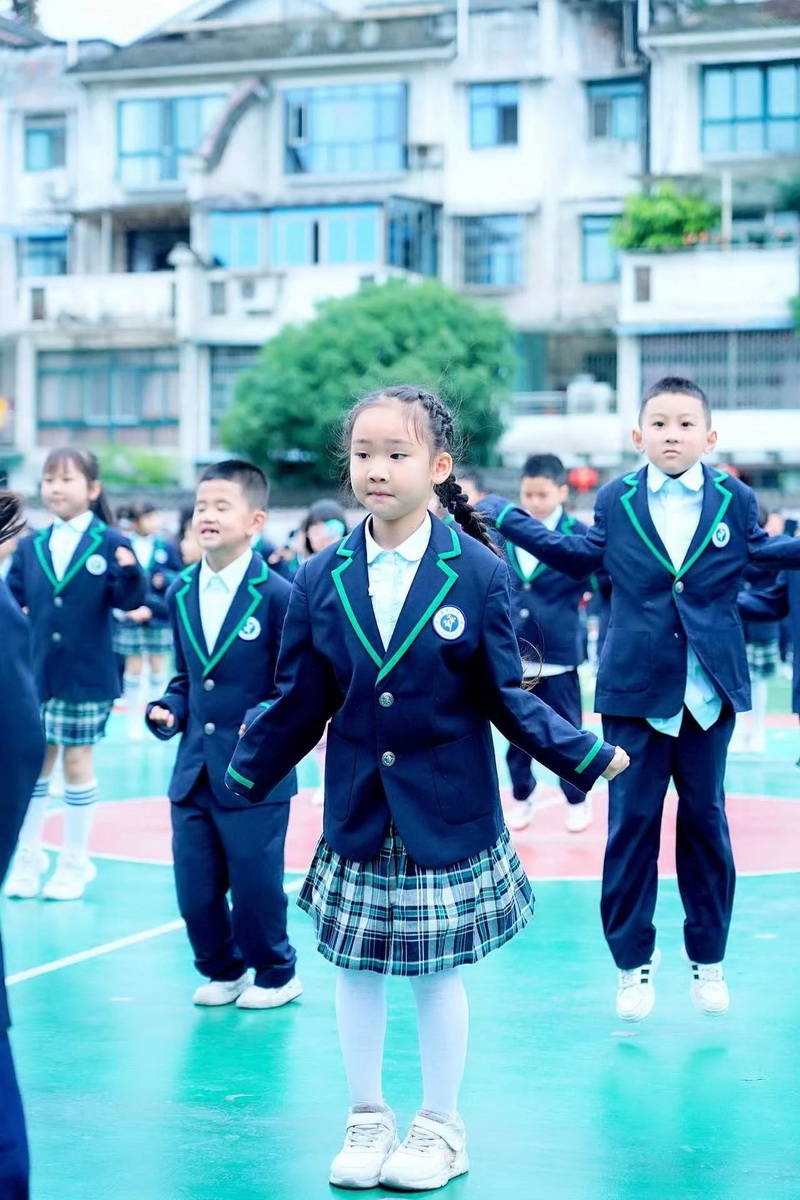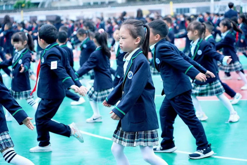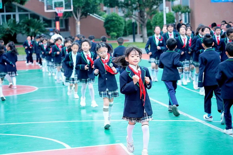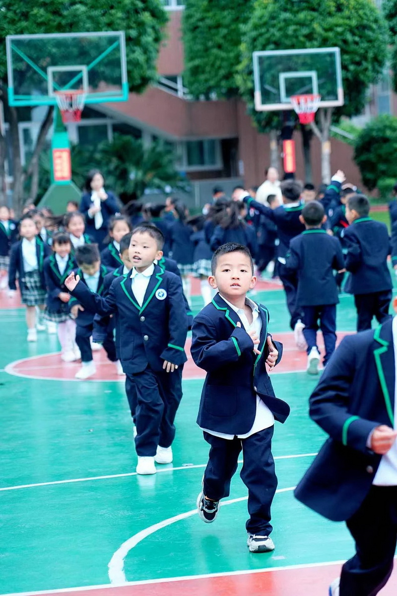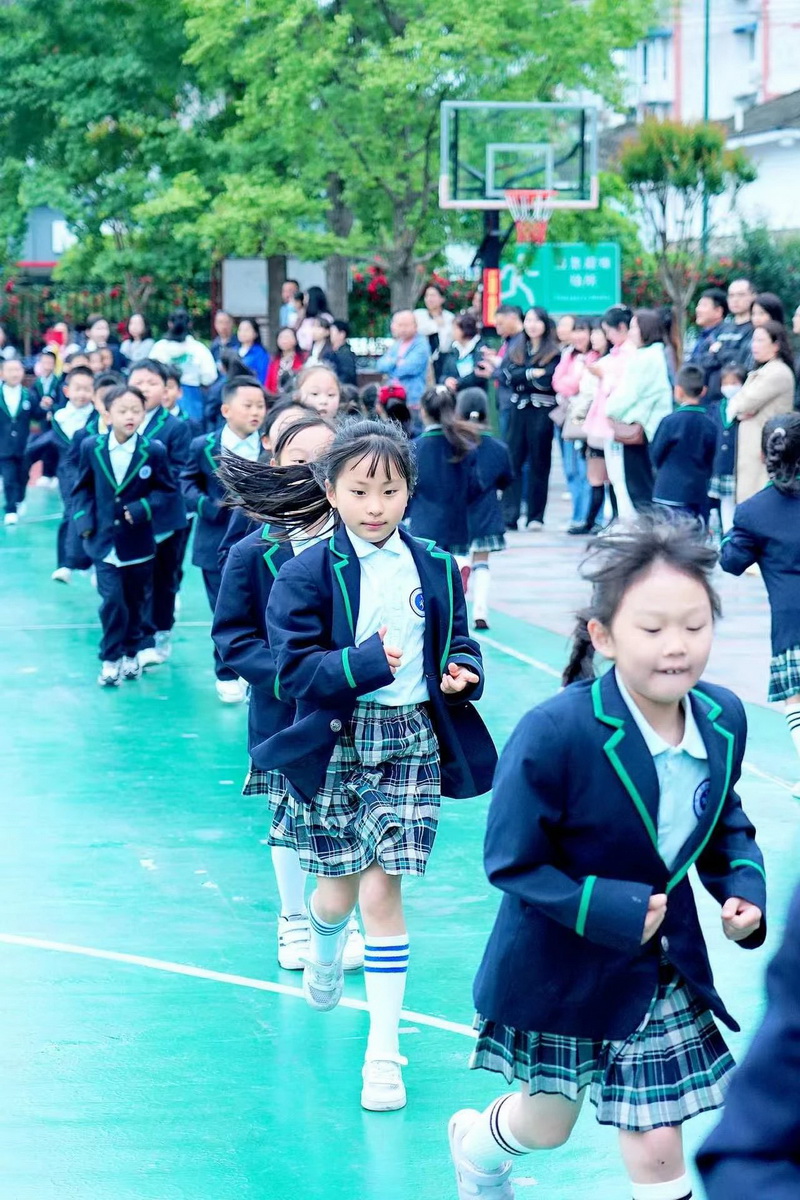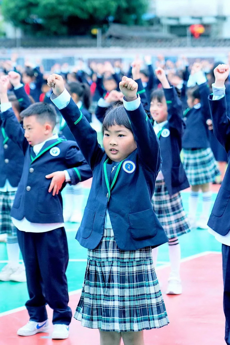 灿烂的笑脸、整齐的步伐、有力的臂膀,响亮的口号,一年级小朋友自信地展示着朝气蓬勃,活力向上的精神面貌。